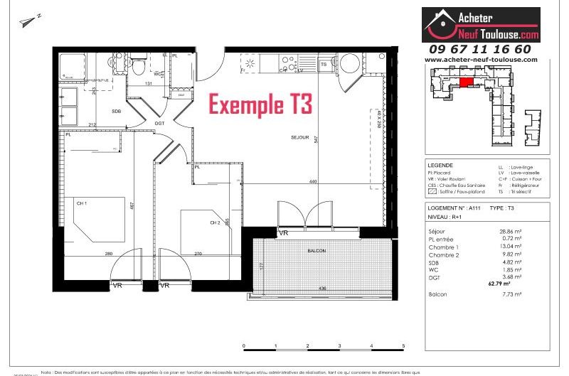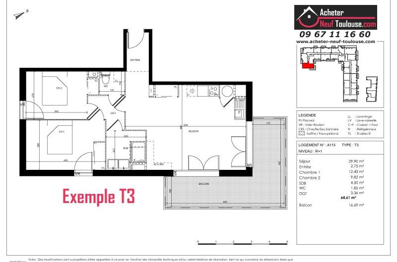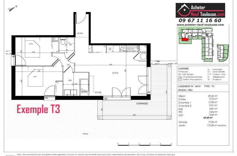 Appartement T3 De 62 m² à 64 m² |