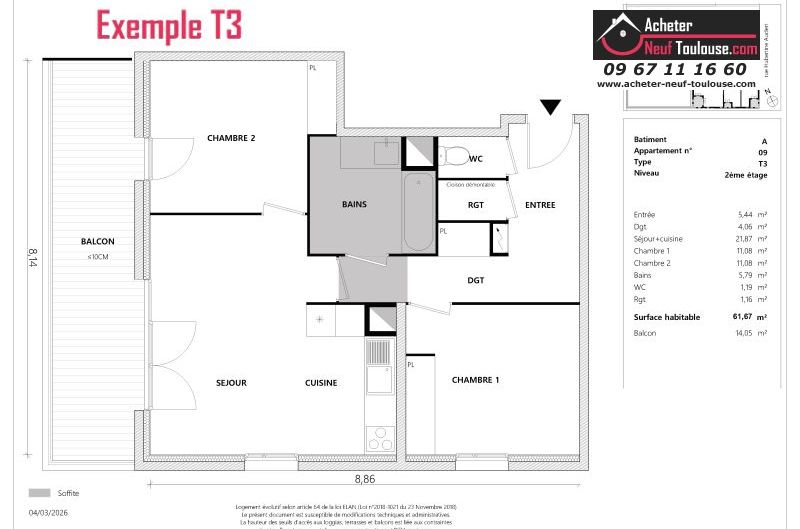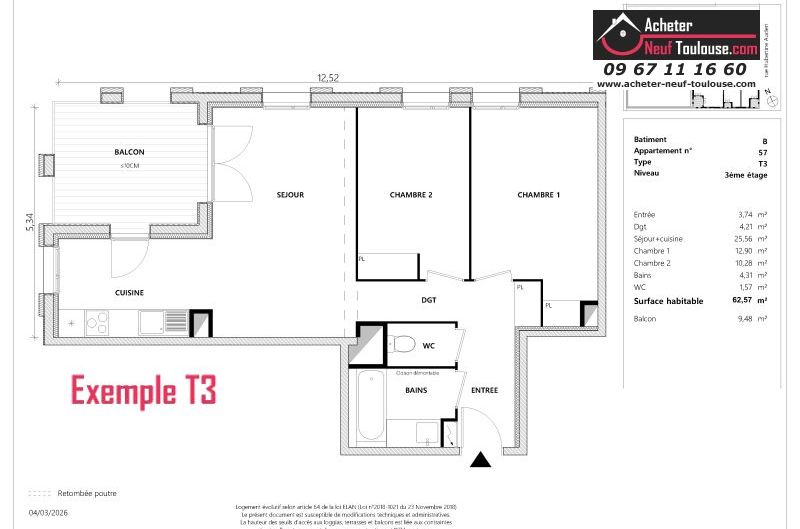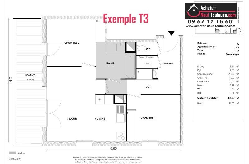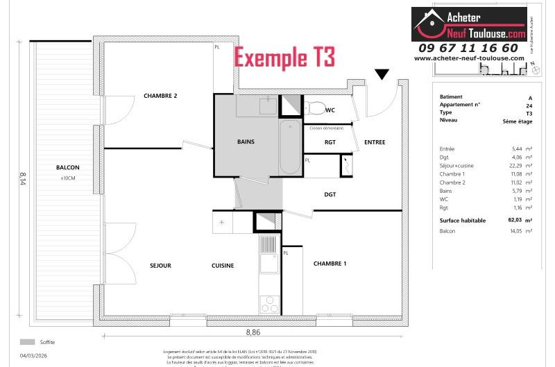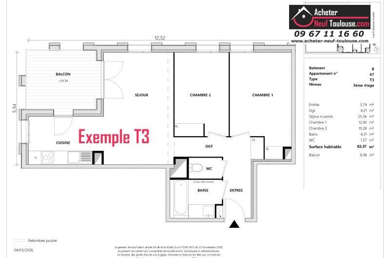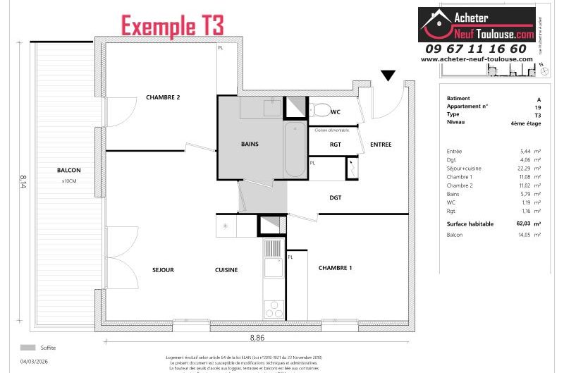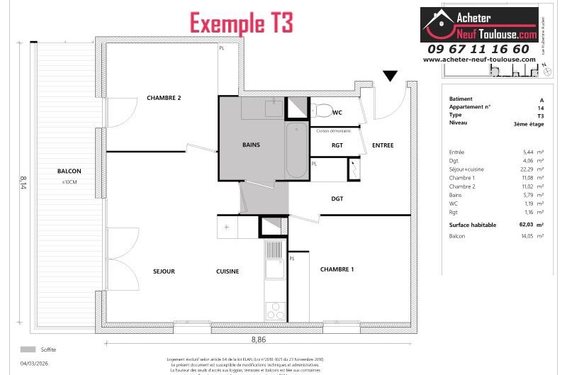 Appartement T3 De 62 m² à 64 m² |