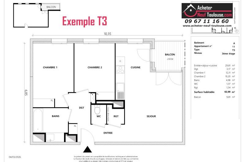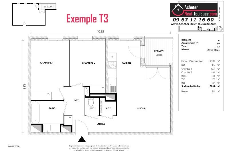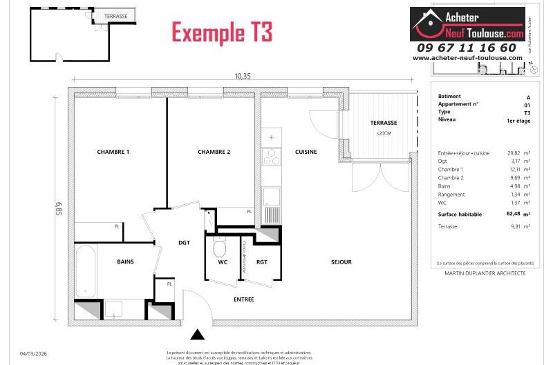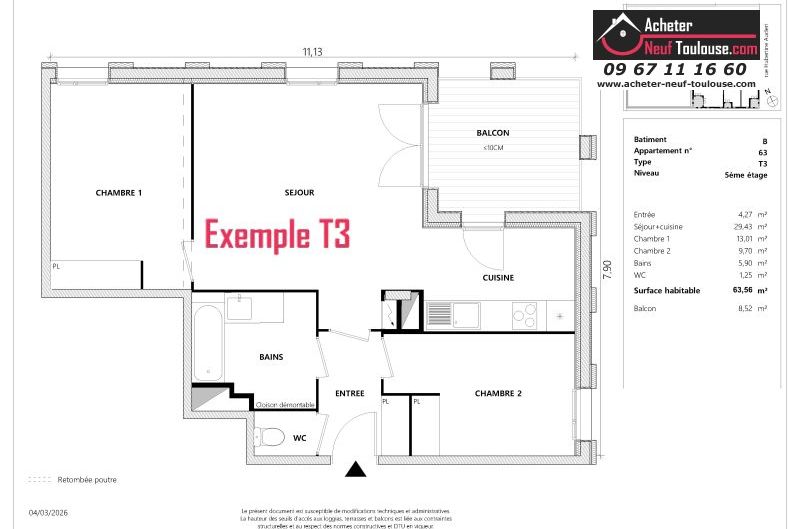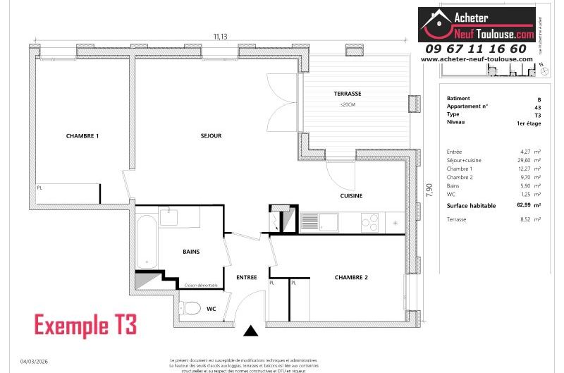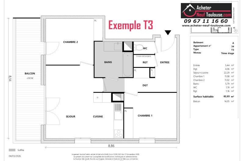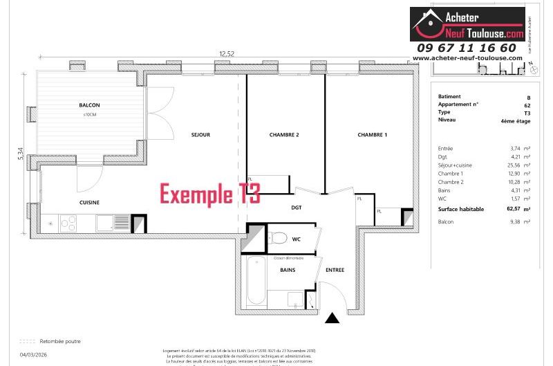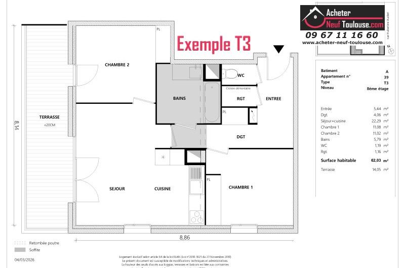 Appartement T3 De 62 m² à 64 m² |