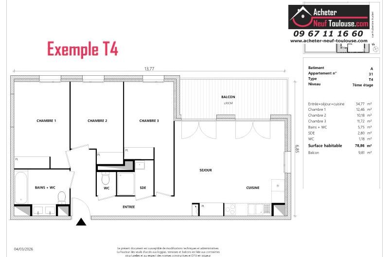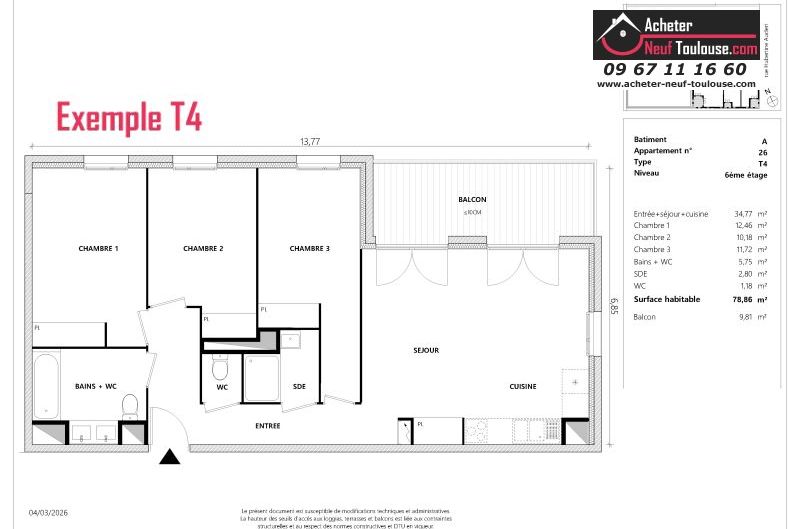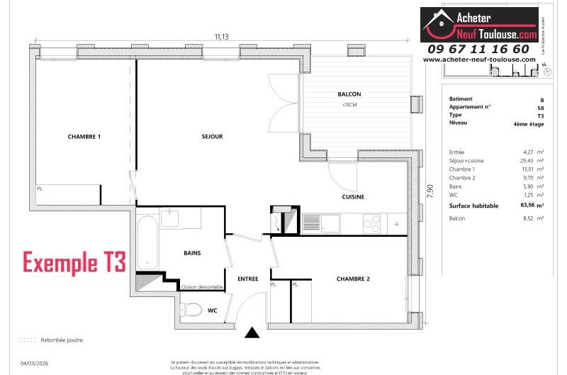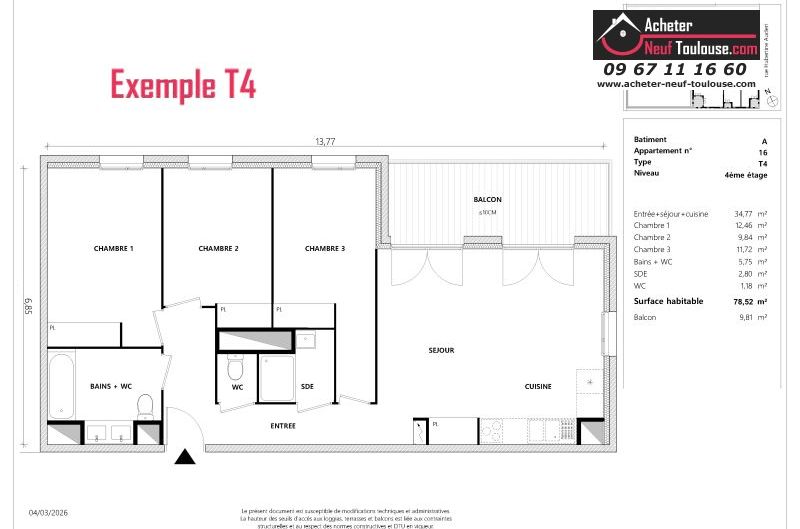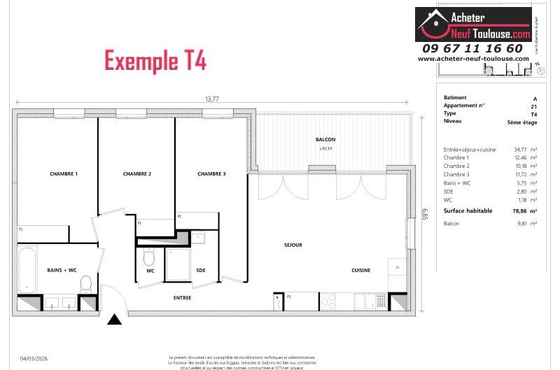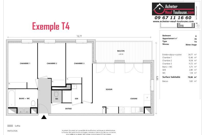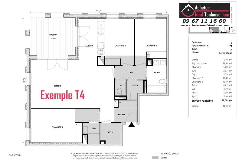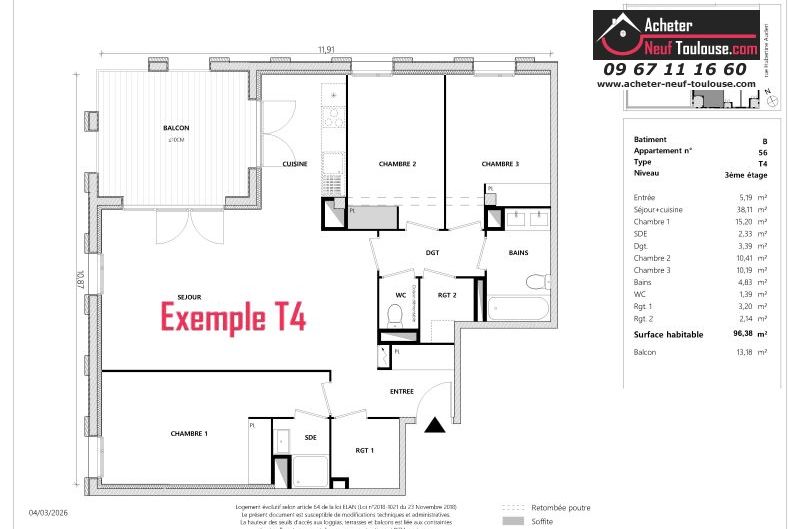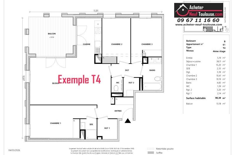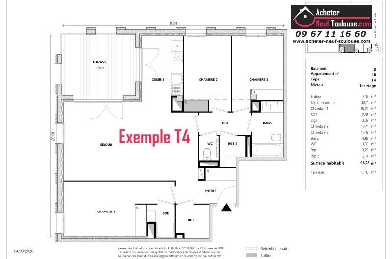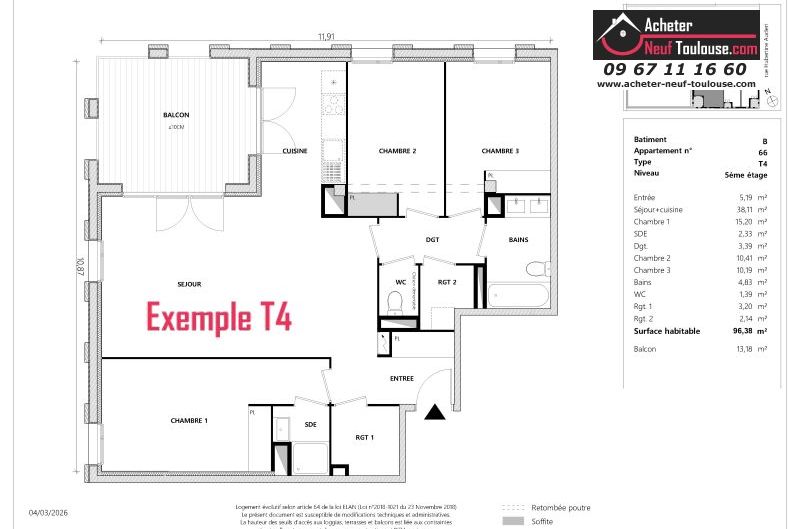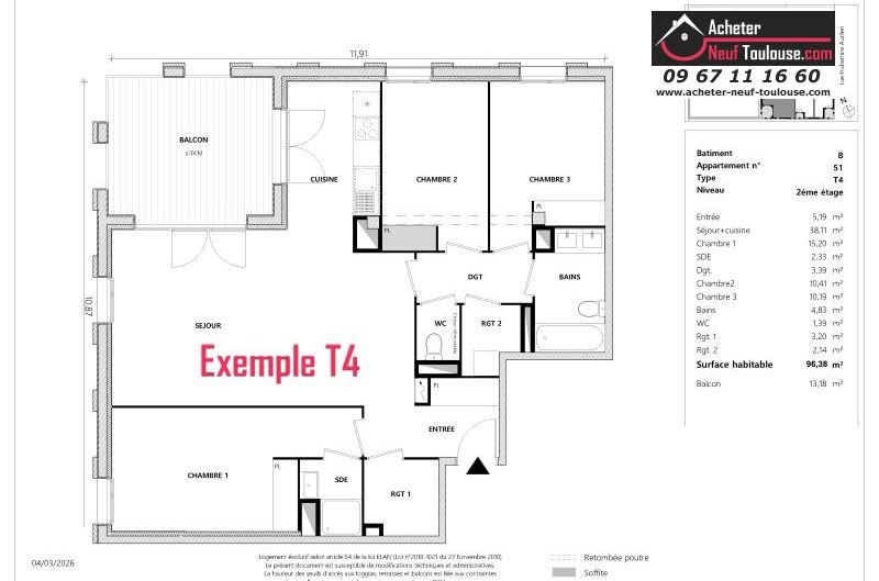 Appartement T4 De 96 m² à 96 m² |