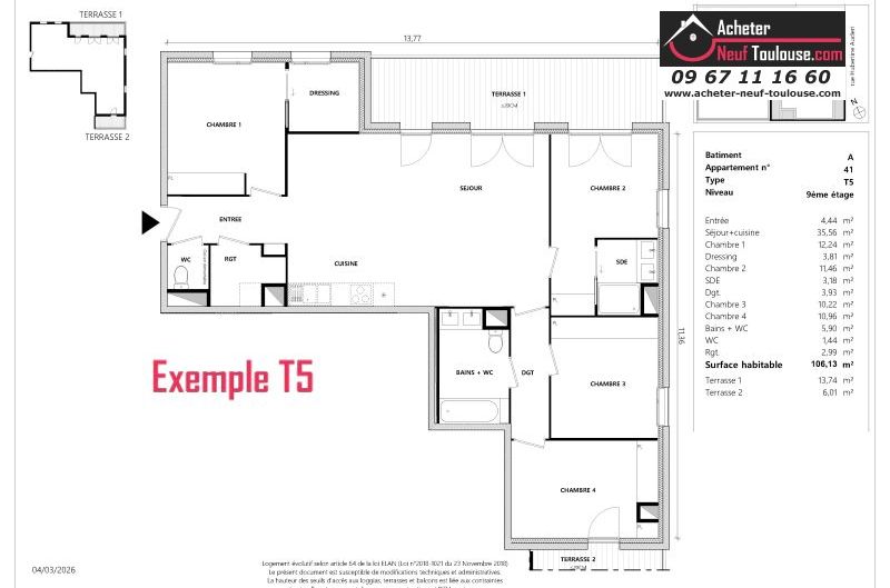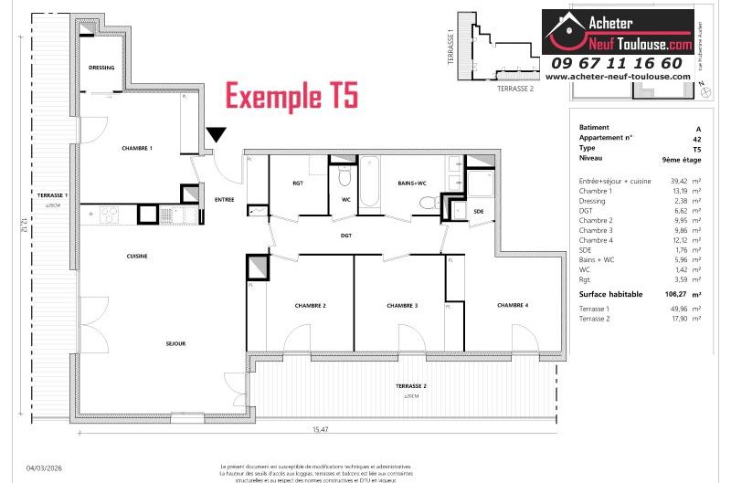 Appartement T5 De 106 m² à 106 m² |