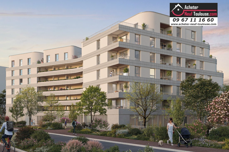 Ce programme immobilier neuf Toulouse Montaudran propose une architecture moderne et élégante, caractérisée par des lignes douces et des espaces extérieurs généreux.