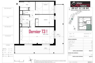 - T3 = 62 m² minimum + 5 m² pour l’espace extérieur + double orientation